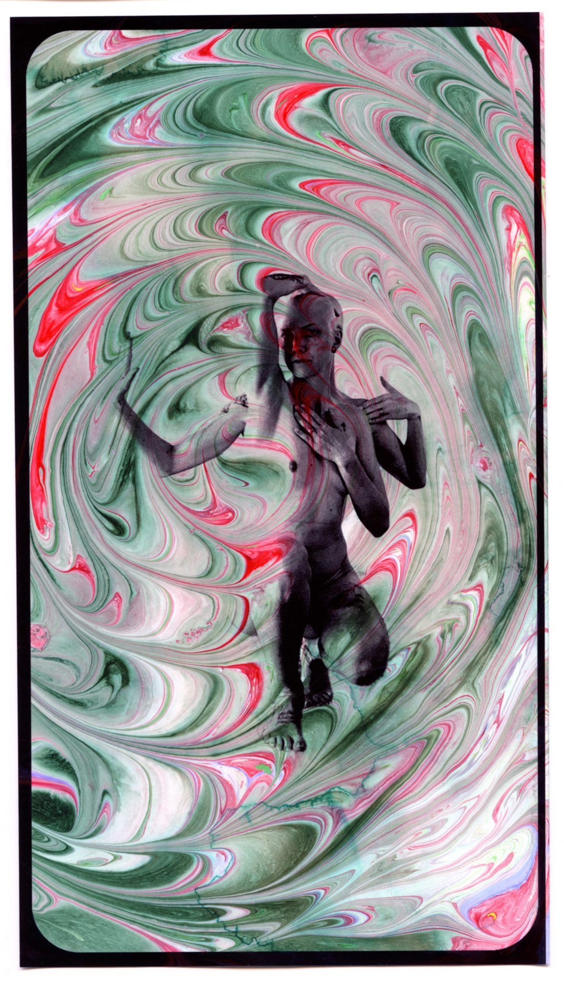 Pain Vogue/Cancer Realness. Hand dipped acrylic monoprint, inkjet photo on rag paper. 6x10 inches.